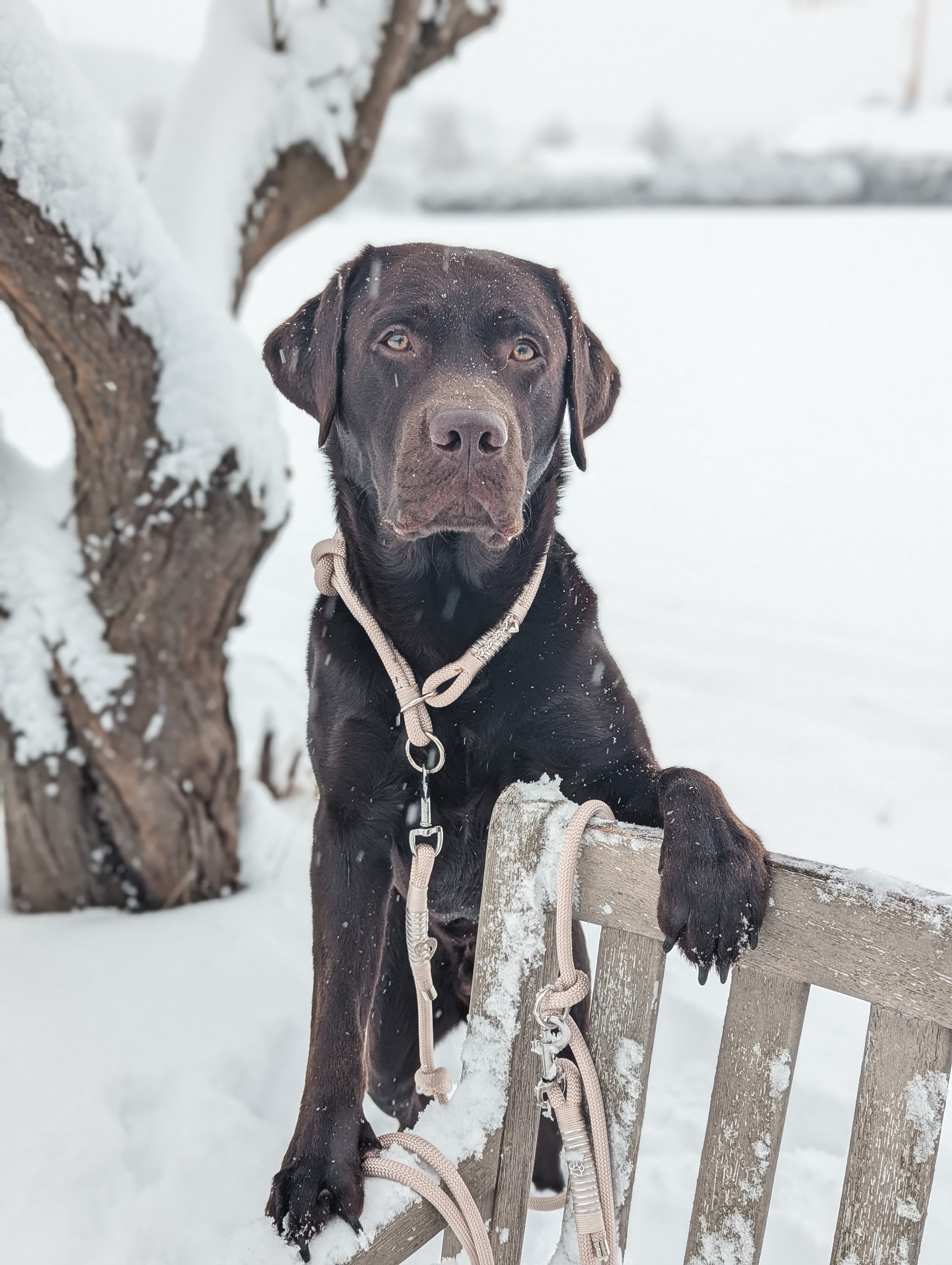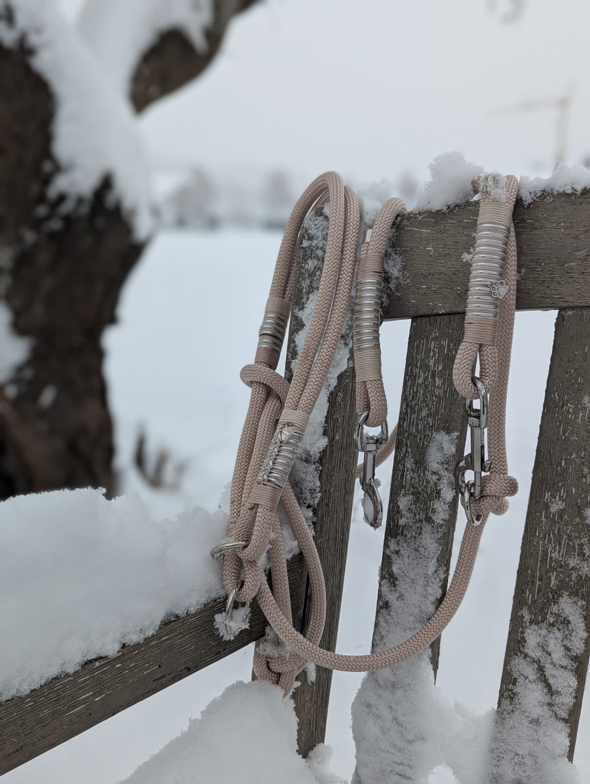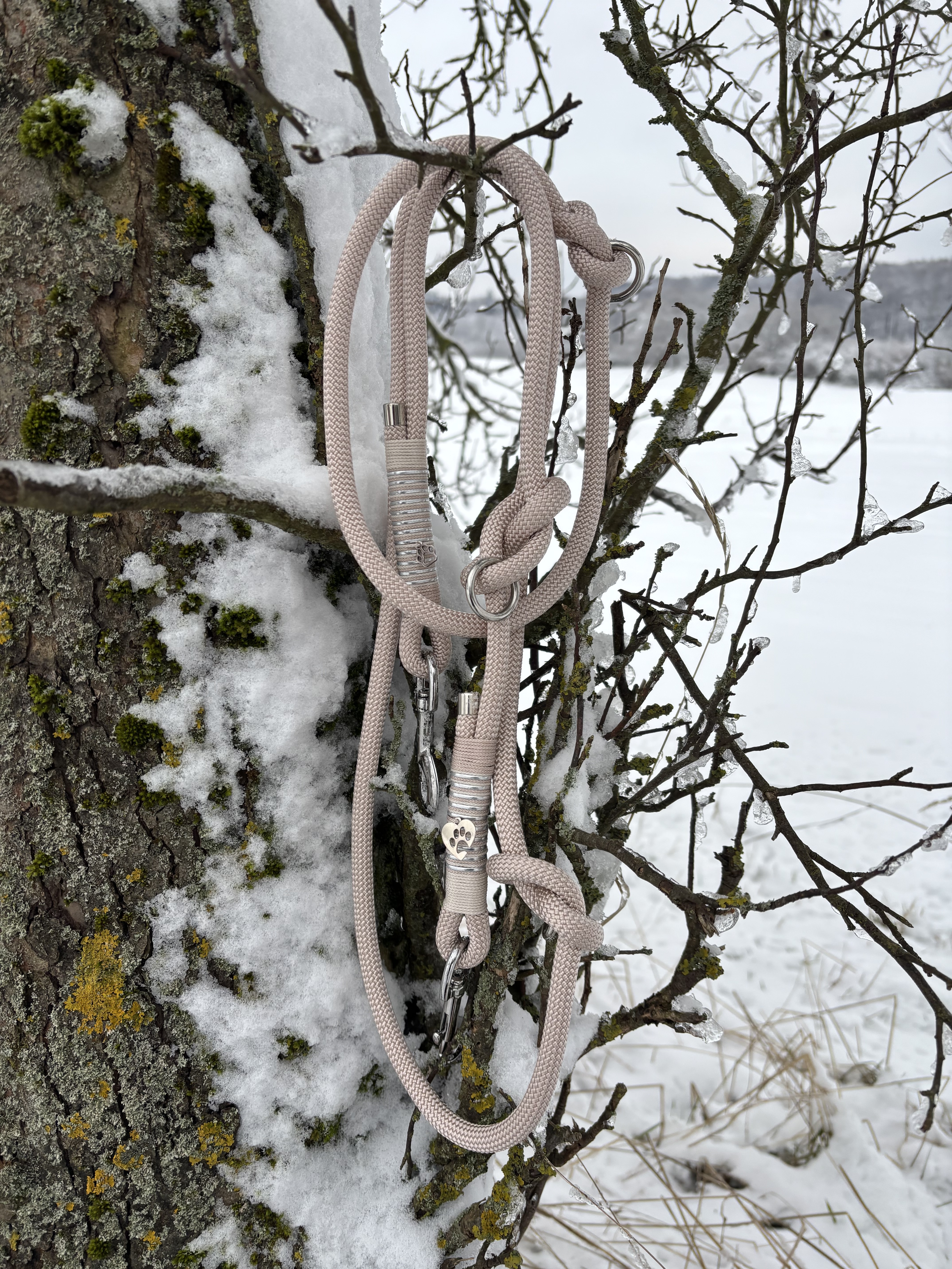Das Retriever-/Zugstopp-Halsband sowie die passende Tauleine werden vollständig aus robustem Tau gefertigt. Am Halsband ist das Tau doppelt genommen, was nicht nur für eine besonders angenehme Haptik sorgt, sondern auch zusätzliche Stabilität bietet. Die schlichte Wicklung in abgestimmten Naturtönen unterstreicht den edlen Charakter des Sets, ohne aufdringlich zu wirken.