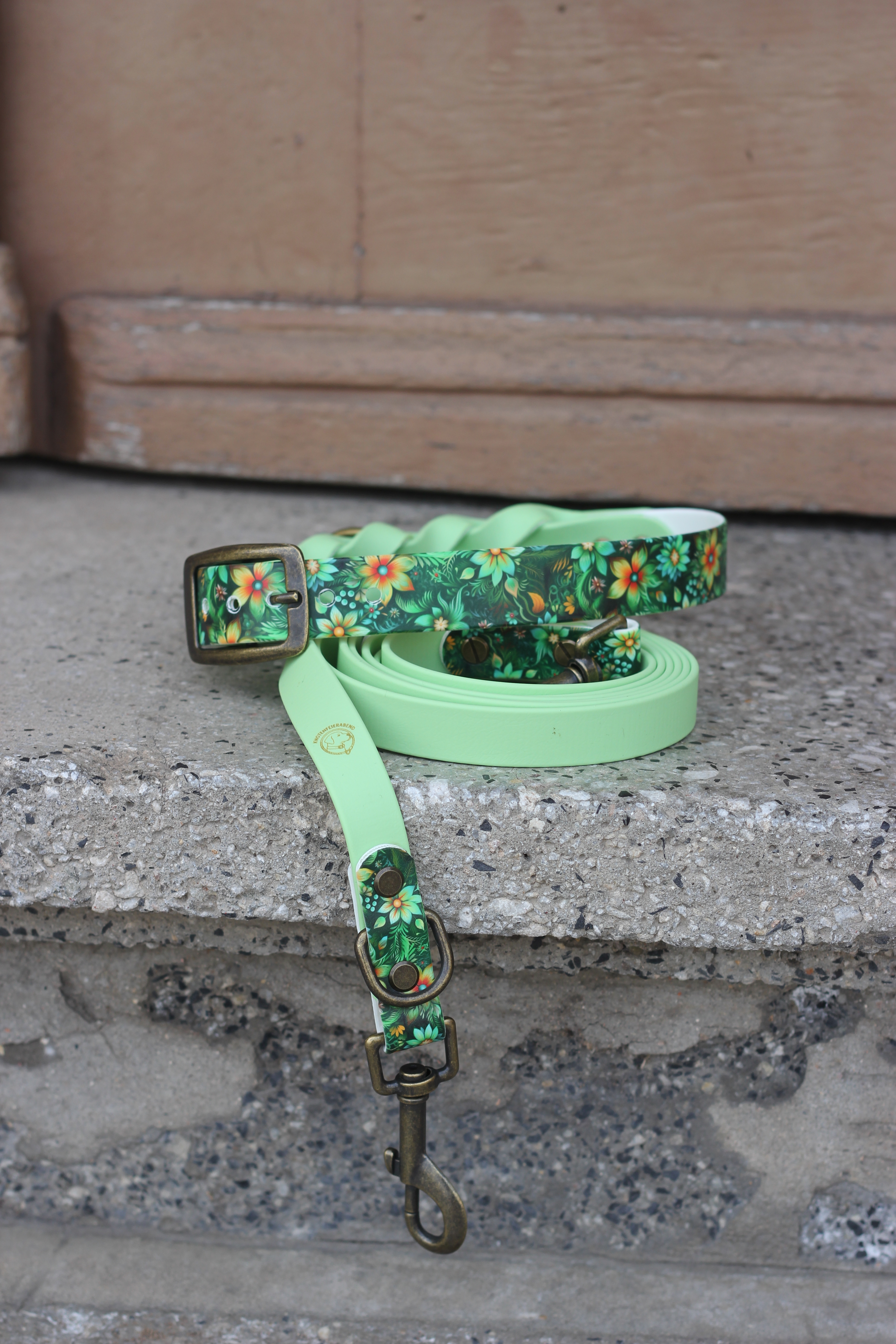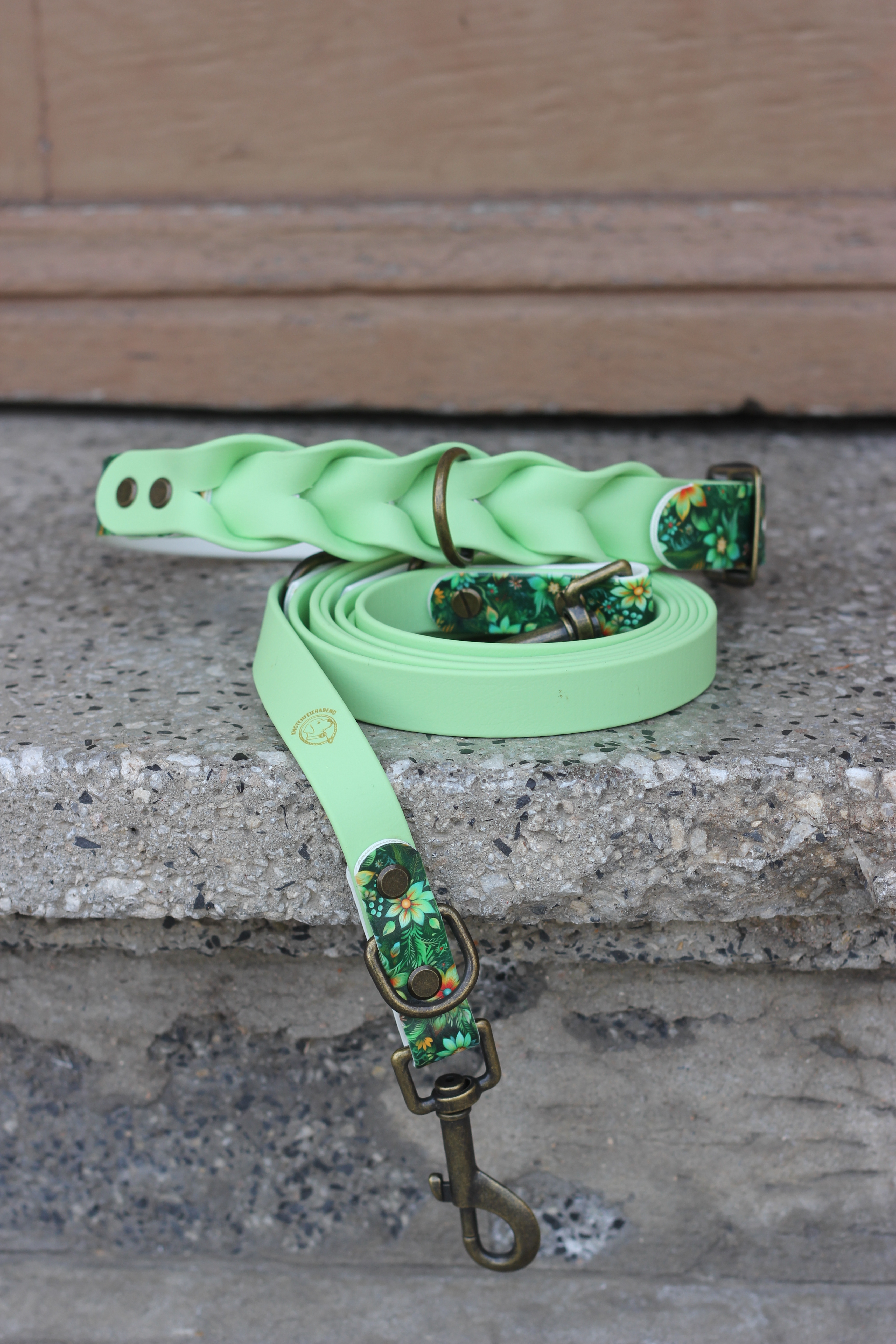 Leine: 19mm breit, 2,27m länge, 3-fach verstellbarNatürlich, frisch und voller Leichtigkeit – Green Garden bringt die Schönheit eines blühenden Gartens direkt in euren Alltag. Das detailreiche florale Muster in satten Grün- und warmen Blumentönen harmoniert perfekt mit der zarten, pastellgrünen Biothane und verleiht dem Set eine besonders sanfte und zugleich moderne Ausstrahlung.