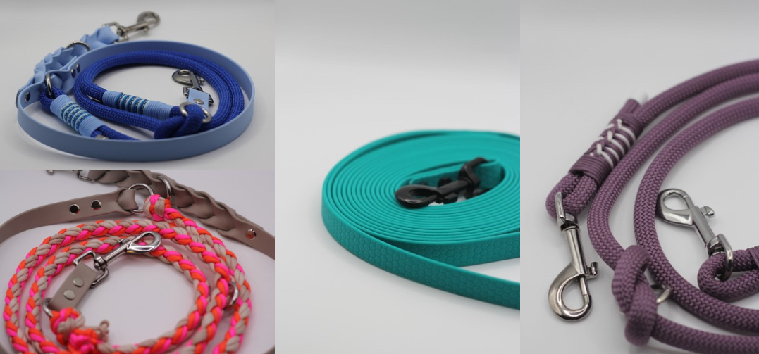 Mit unserem Leinen-Konfigurator bestimmst du selbst: Länge, Farben, Karabiner und Extras. So entsteht eine Leine, die nicht nur praktisch, sondern auch ein echter Hingucker ist – perfekt abgestimmt auf dich und deinen Vierbeiner.
