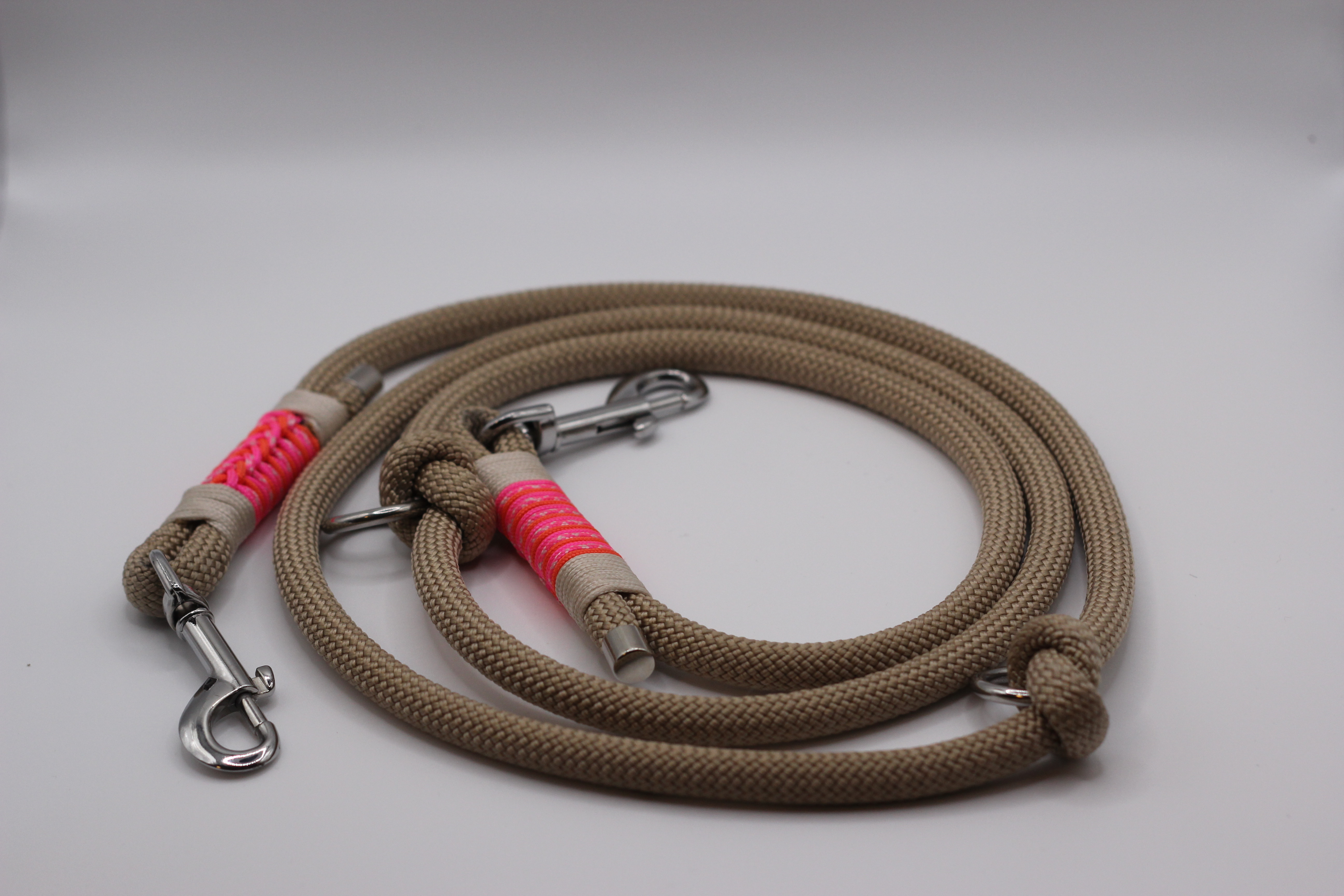 Die „Desert Flame“-Leine vereint natürliche Zurückhaltung mit feurigen Akzenten. Das warme Beige erinnert an Sand und Natur, während Neonpink und Neonorange wie kleine Flammen hervorstechen und für einen modernen, auffälligen Look sorgen.