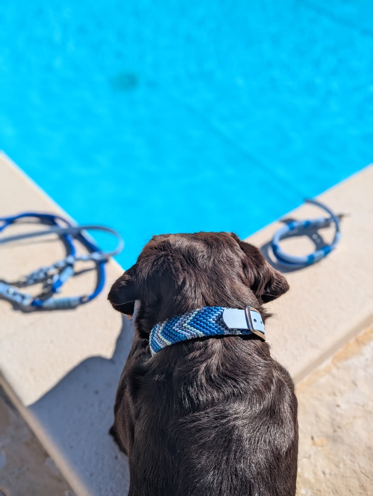 schokopfote.balu) vereint verschiedene Nuancen von Hell- bis Dunkelblau in einem modernen Zickzack-Muster. Der harmonische Farbverlauf erinnert an den Ozean und verleiht dem Halsband eine frische, maritime Ausstrahlung.