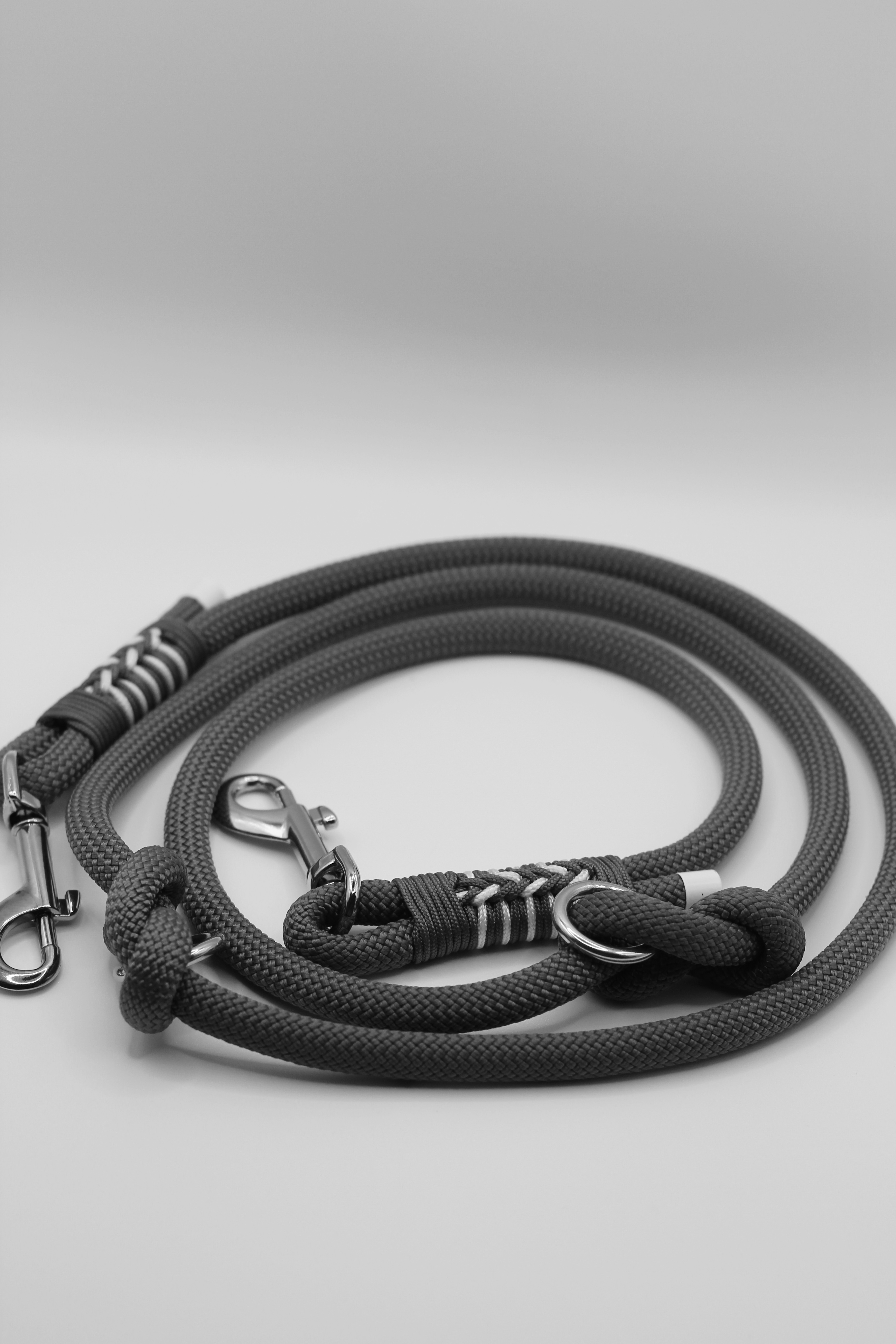 Je länger die Leine, desto mehr Ringe verbauen wir – dadurch entstehen zusätzliche Verstellmöglichkeiten.
