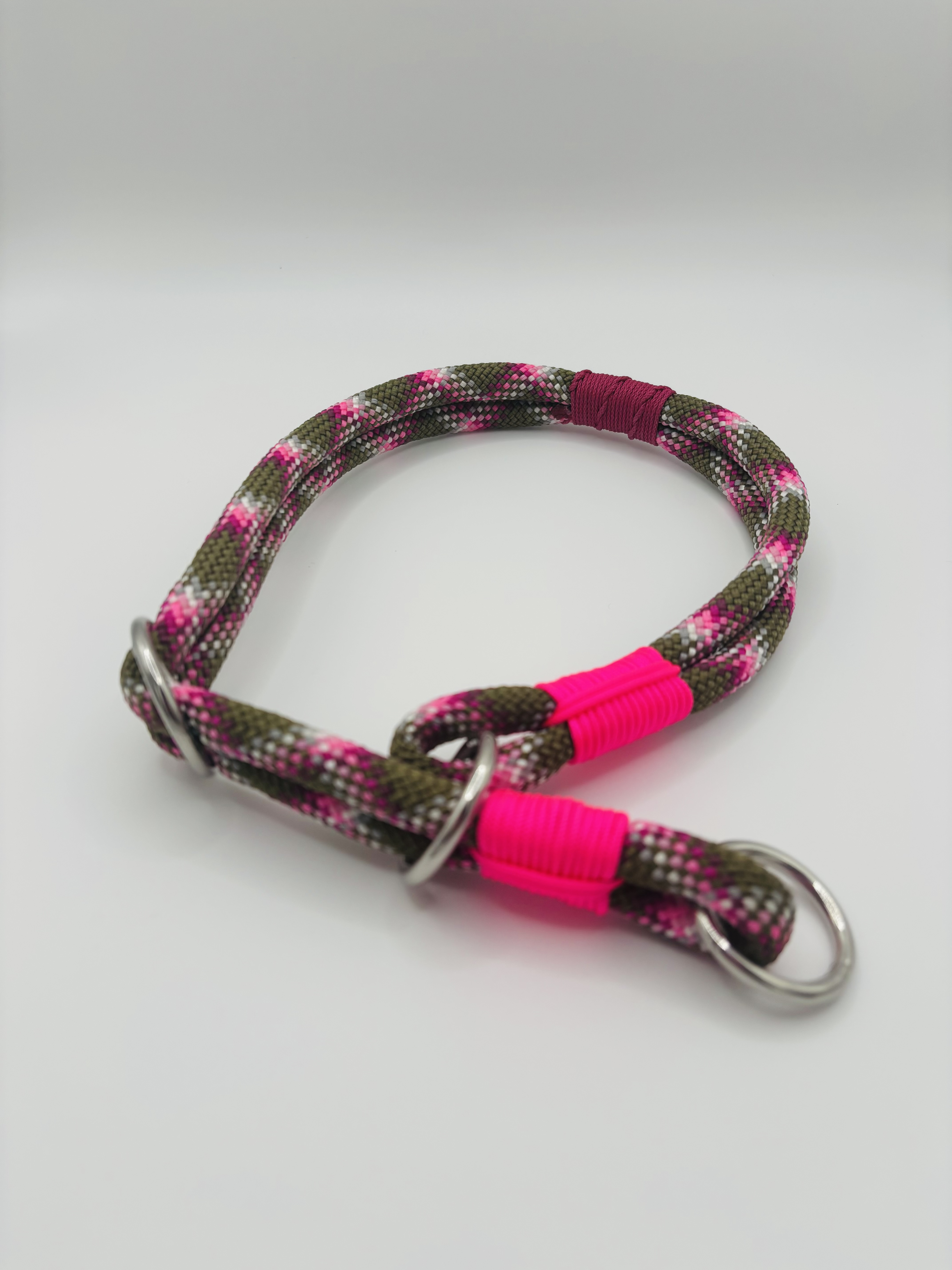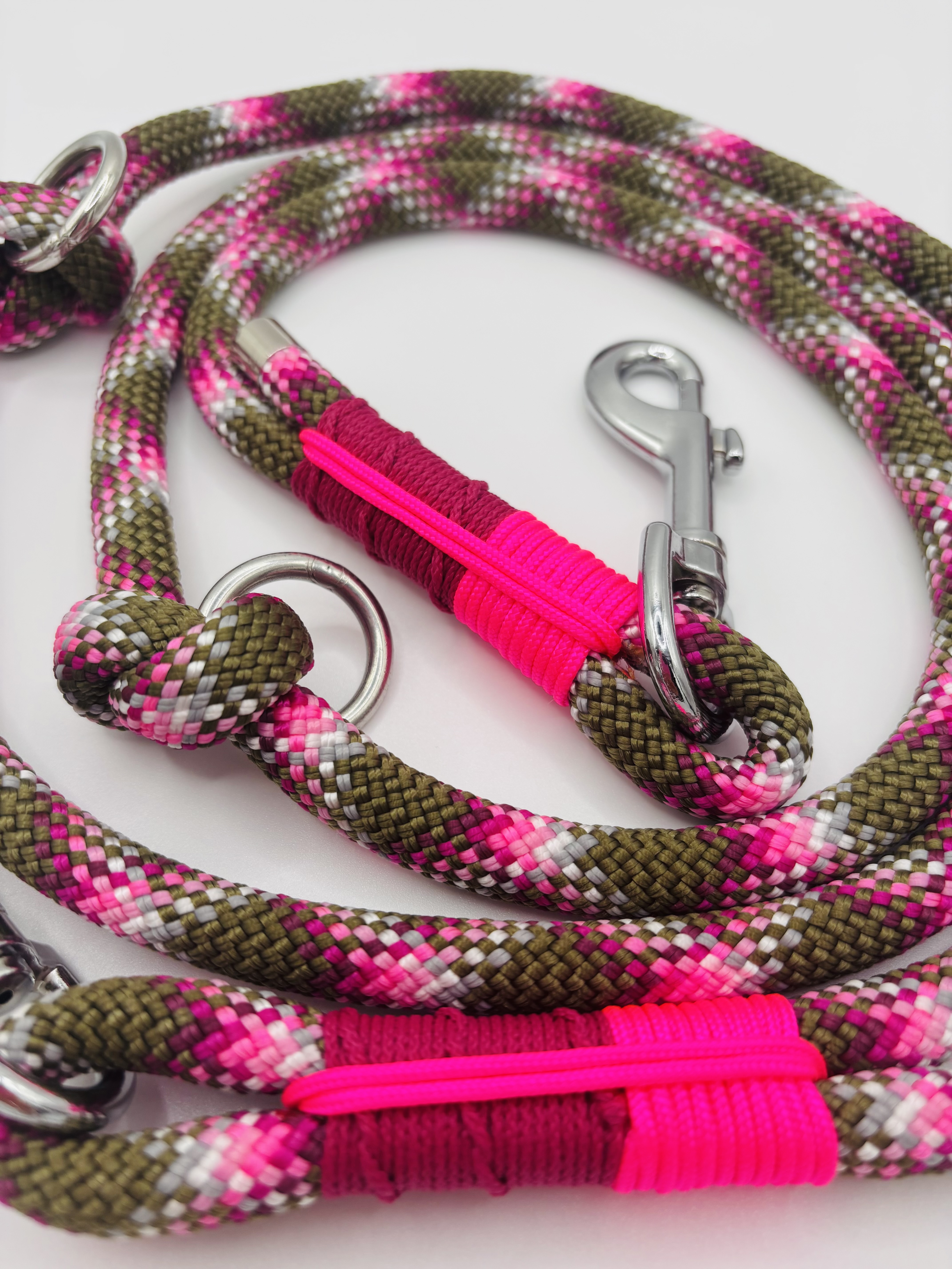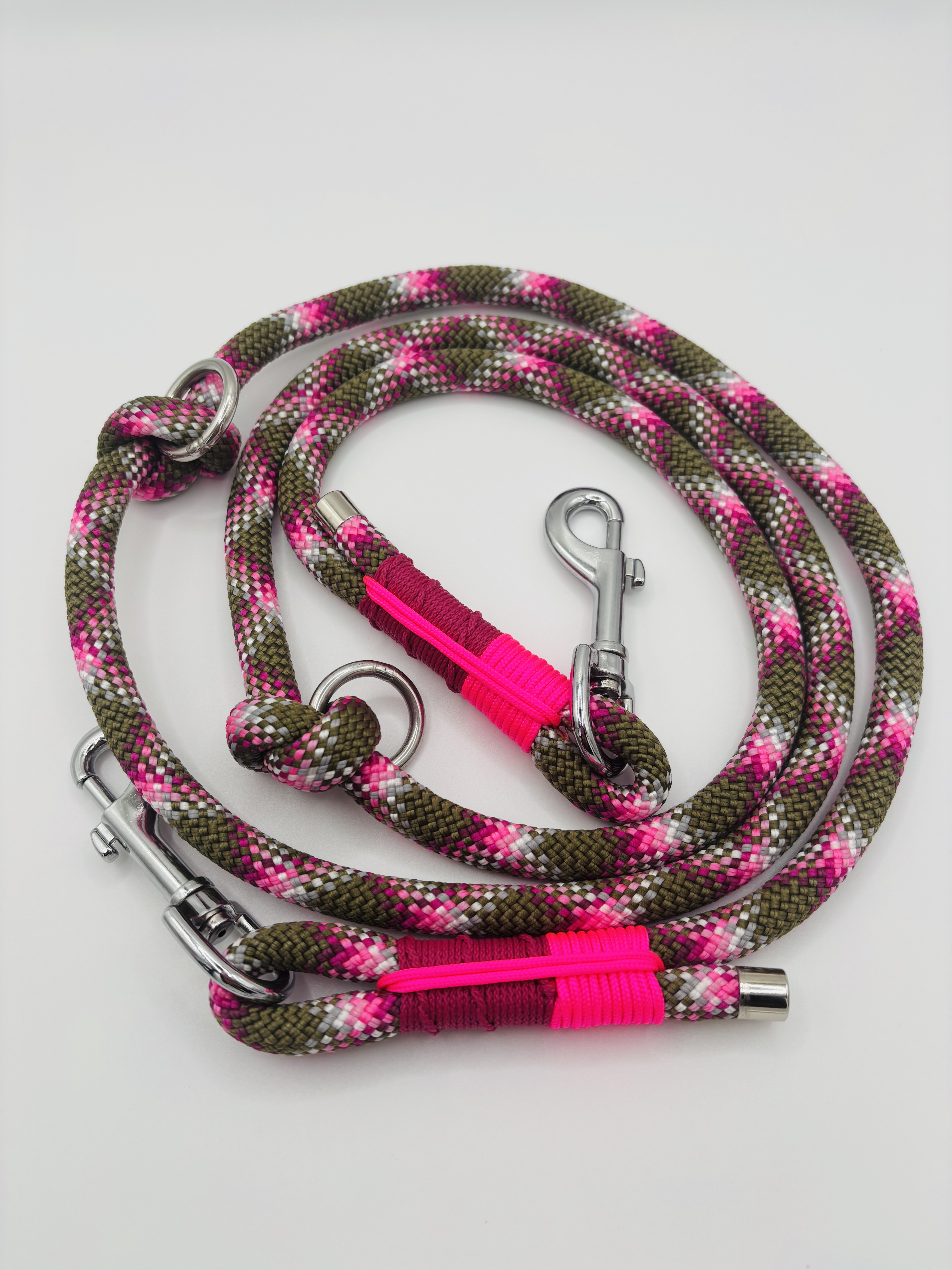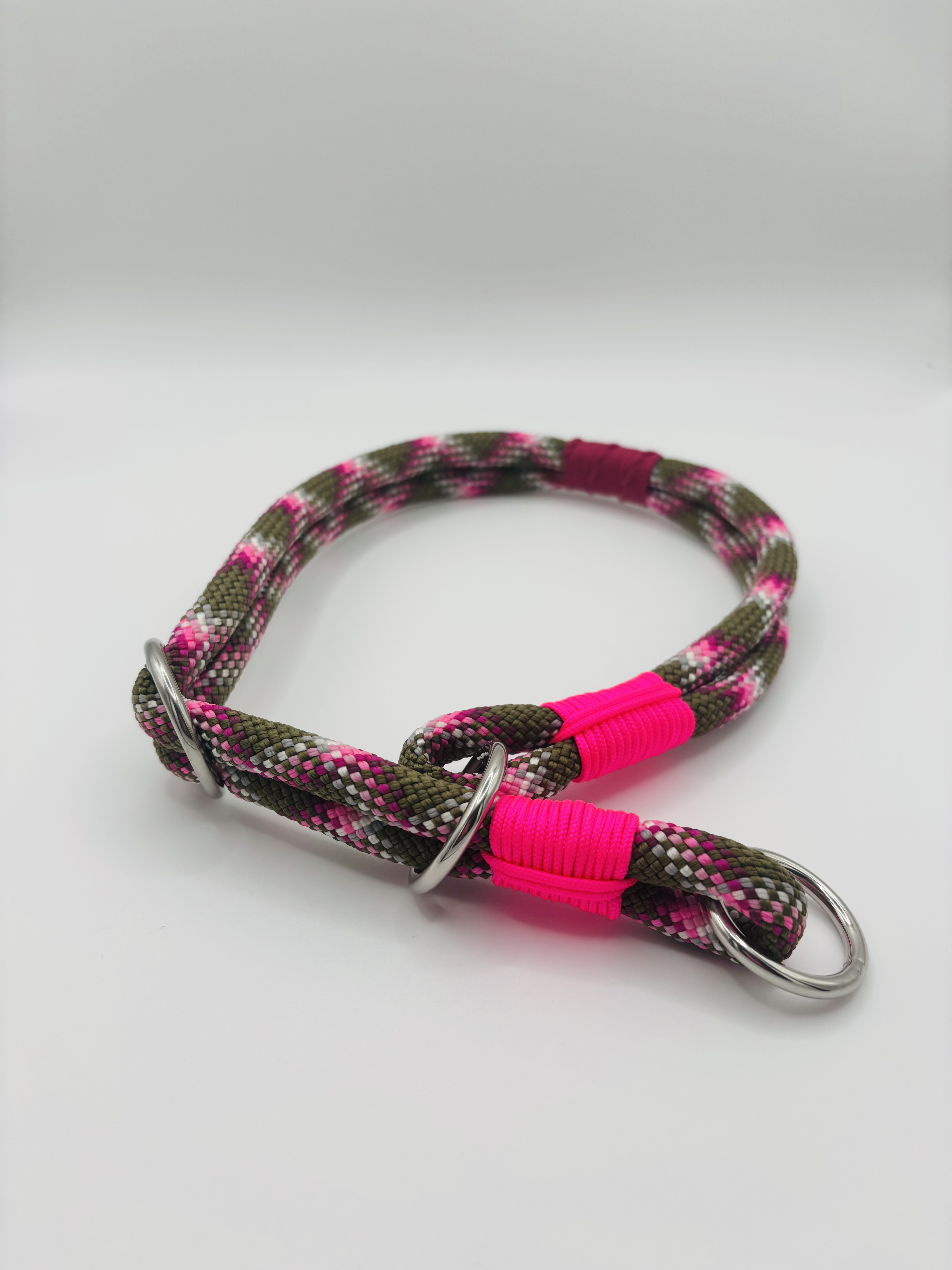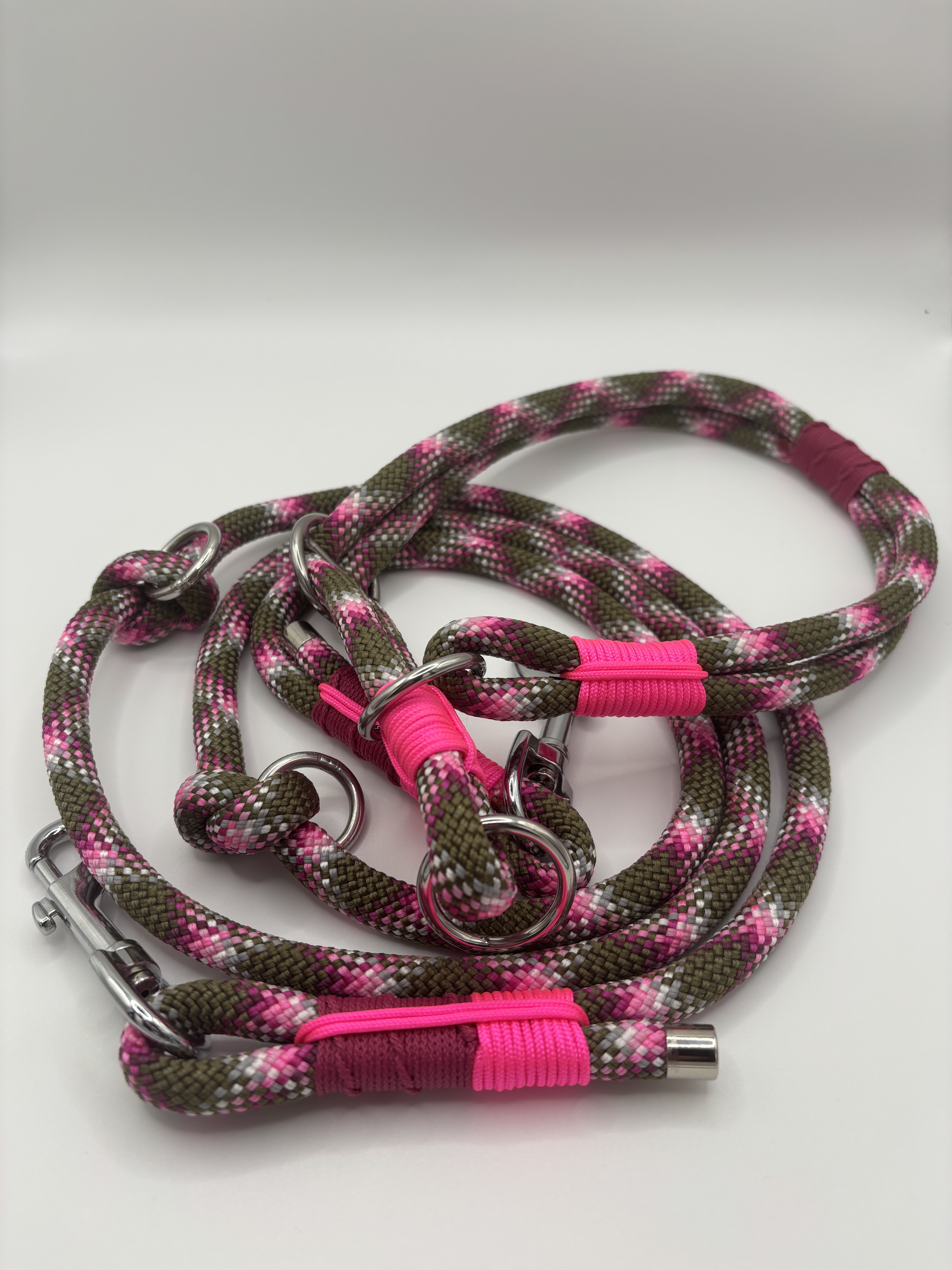 Das „Wild Berry Woods“-Set verbindet kraftvolle Naturfarben mit einem lebendigen Farbakzent. Das Retrieverhalsband und die passende Leine vereinen ein erdiges Grün mit auffälligem Pink – inspiriert von wilden Beeren im Wald.