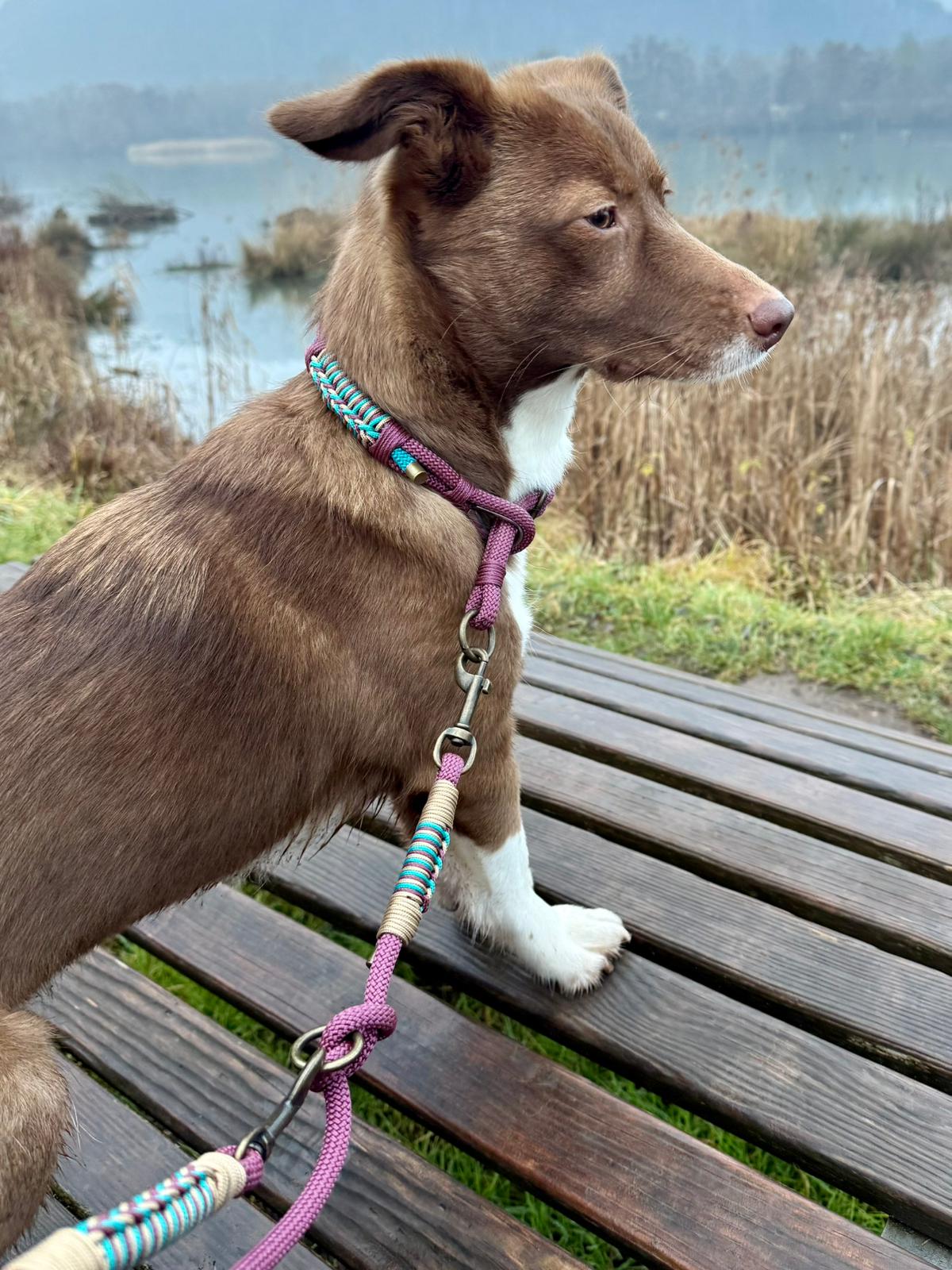 Die passende Tauleine greift diese Farben auf und rundet das Set optisch perfekt ab. Zusammen entsteht ein ruhiges, hochwertiges Gesamtbild, das sowohl im Alltag als auch bei besonderen Spaziergängen überzeugt.